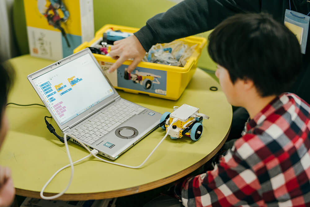 「ハイラボ」に入るとコアスタッフの松浦真さんが施設の説明をしてくれた。ここはデジタルテクノロジーを使って遊んだり学んだりできる場所。プログラミングも学ぶことができ、9時から18時まで、10歳から18歳は無料で利用できるのだという。「18歳までに自分の仕事をつくろう」がコンセプトだ。