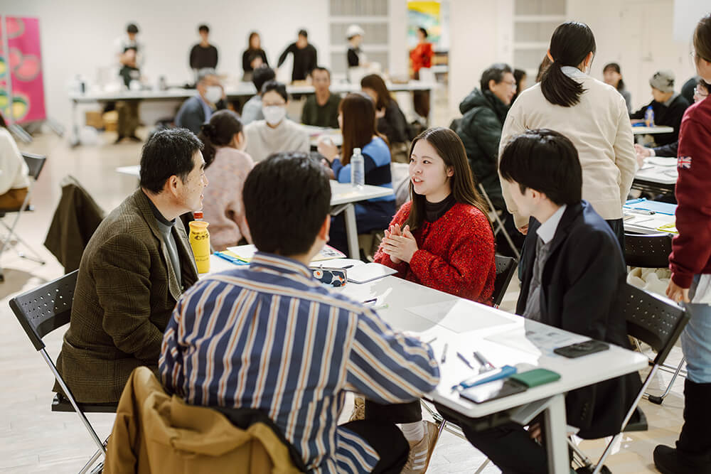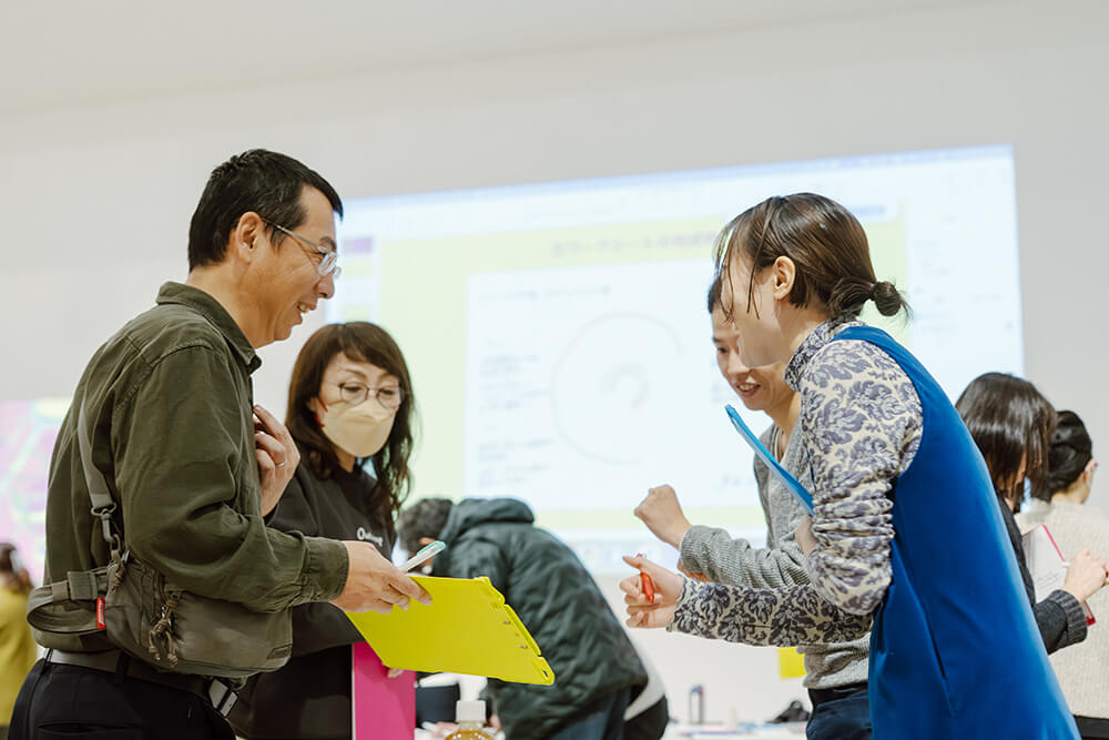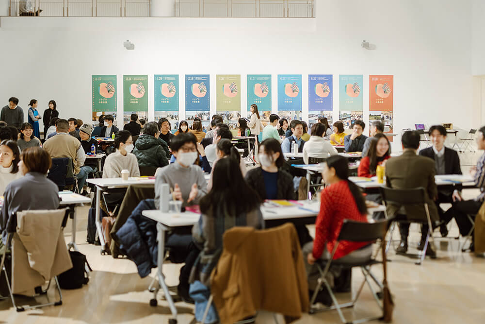その締めくくりとして毎年行われる大会議。2023年は「ソウゾウをひらく」という掛け声のもと、異なるフィールドから多くの参加者が集まった会となった。2024年は顔なじみも増え、話しやすくなったことで対話や議論が増えた「混ざりあう森」。1つの問いに対し皆で意見を出しあったり、個人的な悩みや思いを共有したりと、つながりや相互理解も深まった。