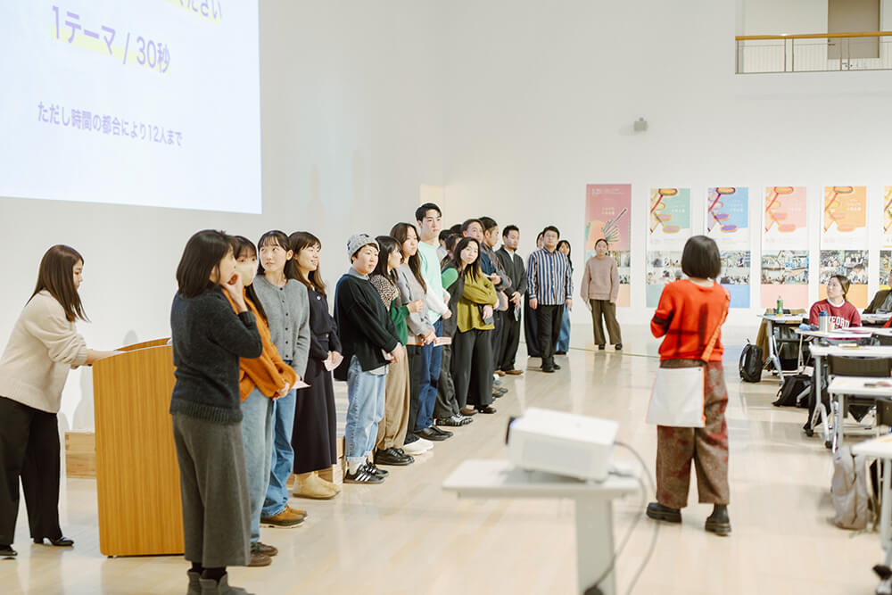 発表した全12グループに対してなされたフィードバック。個々のテーマや活動内容へのアドバイスに加えて、全体に共通していたのは、どれだけ具体的に道のりを描けるか、そして続いていくための仕組みやアイデアが伴っているか、という点。活動の具体性と持続性が問われていることが印象に残った。