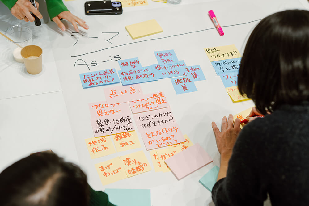 40分という短い時間の中で、テーマについてそれぞれが持っている情報やイメージを共有し、さらに3年から5年という時間軸で、マイルストーンや付随するタスクを考えていく。