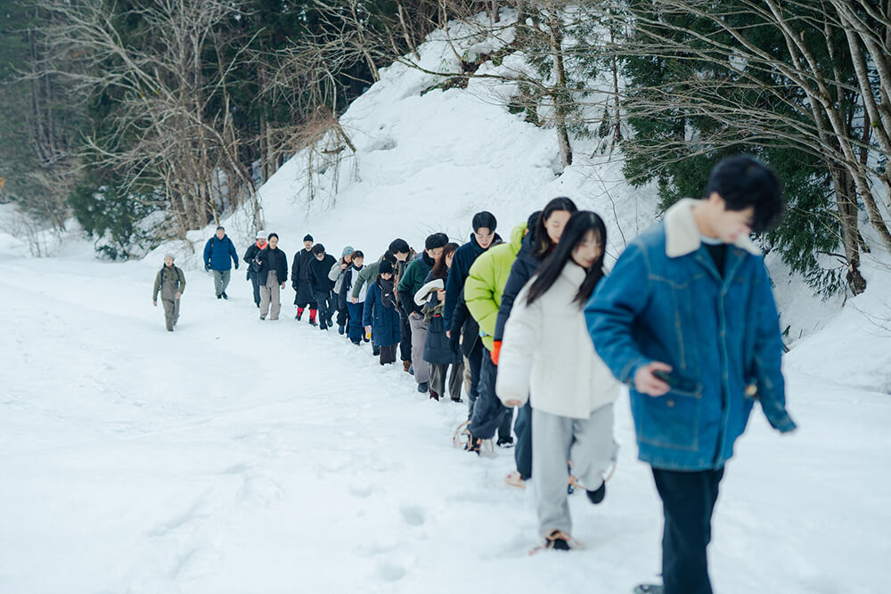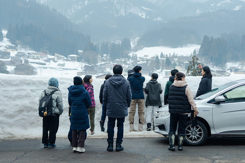 内陸線を降り、集落へと続くトンネルを抜け、集落を一望する。雪山を歩き、考えに耳を傾け、問いを起点に議論する。共通の体験であったとしても、地域の暮らしや文化に何をみるか、そこから何を考えるかはそれぞれに委ねられている。この日、ソウゾウの森会議をきっかけに集落を訪れた様々な人がいる。今日見聞きしたことは今すぐでなくとも、時間が経って何かにつながるかもしれない。