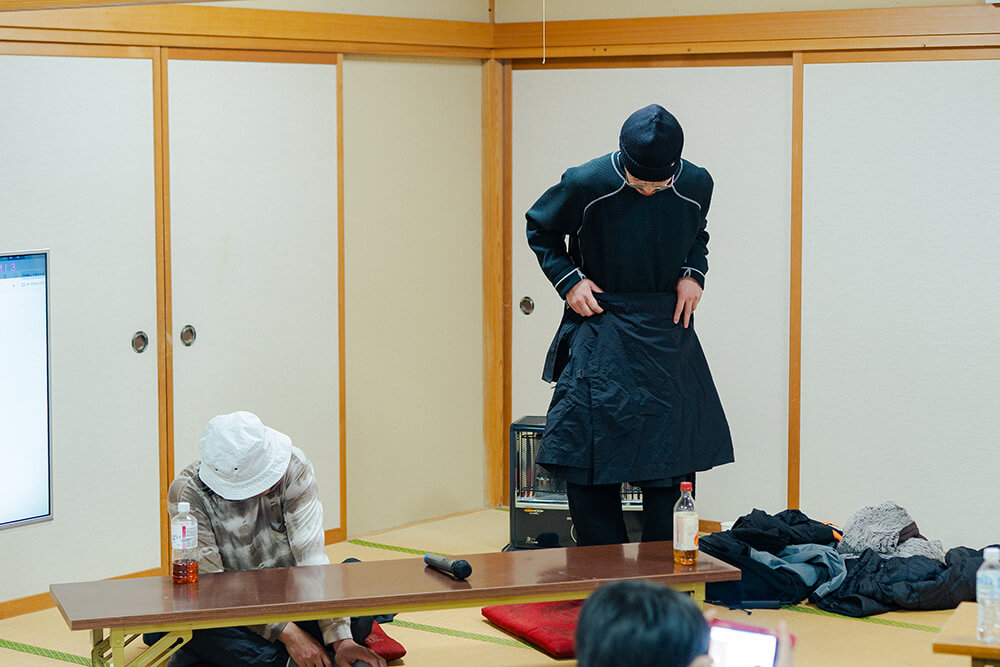 アパレル業界では、大量生産によって生まれる余剰在庫をセールで売りさばくのが常識となっているが、田窪さんからのアイデアで坂下さんが企画・制作するものは、「登山のときに着用する男性用スカート」「寝袋の機能も備えたオーバーオール型の軽量ウェア」など、決して大勢の人が求めるとは言い難い製品。受注生産であったり、納品に半年ほどかかったりする場合もあるが、お客さんから文句が出ることはないという。事業である以上、市場から完全に離れることはできない。しかし、作り手や売り手の顔や性格、考えていることや目指すものが伝わることで、買い手がお金を払い単に商品やサービスを享受するのではない関係、対等なやりとりができるということだろう。