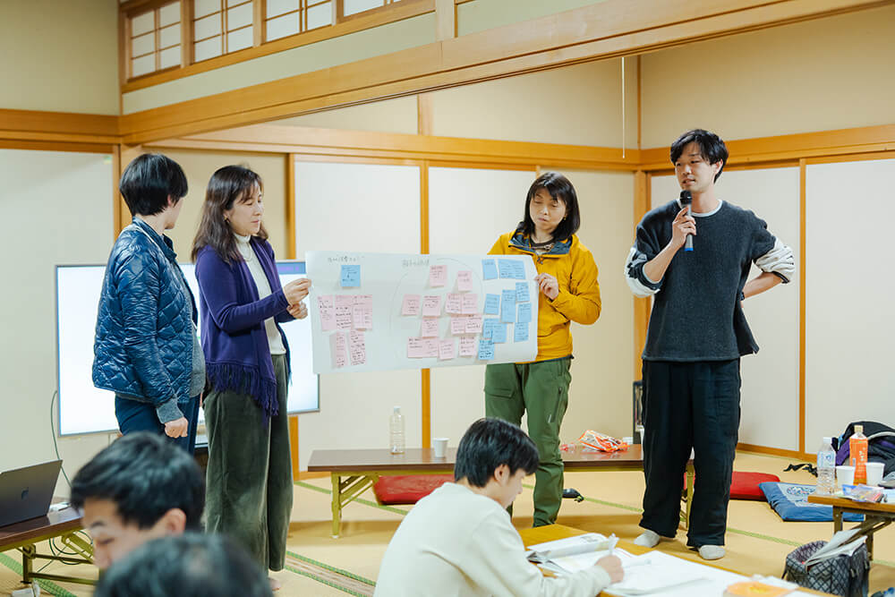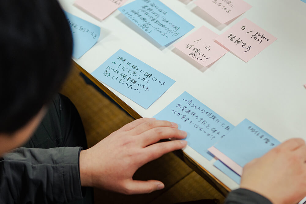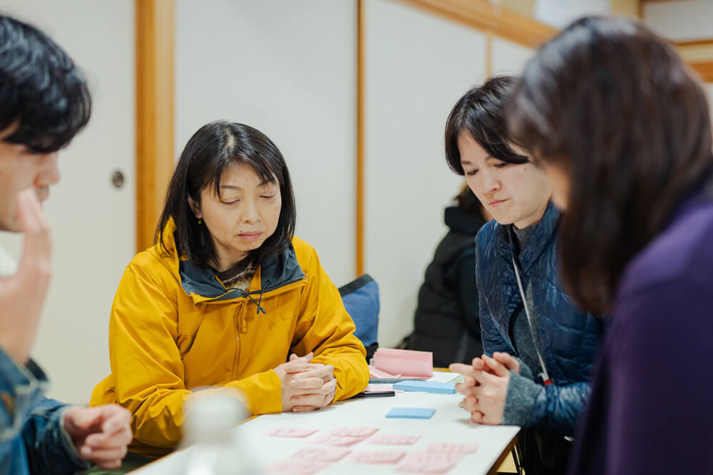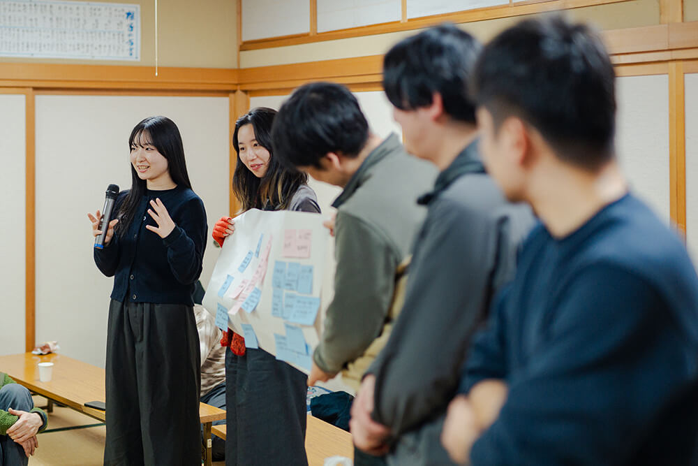 続いて「雪山散策や会議を経て感じた、根子の潜在的価値」を考える。初めて根子を訪れたという大学生が「今日は案内をしてくれる人がいたことで、身近にある山や、何気ない集落の風景も、ここで生活する人の視点に立ち、見聞きすることができた」と語る。観光地はどうしても、観光客用に整備された建物や景色を巡ることが多くなるが、ウヘエを通じて根子を知ると確かにこの土地で暮らす人の生活こそが価値だと気付かされる。